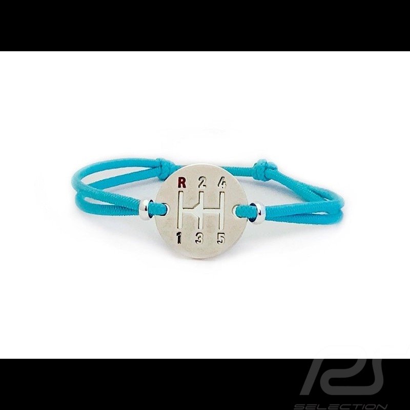 Gearbox Armband Silber finish farbige Schnur in Miamiblau Made in France