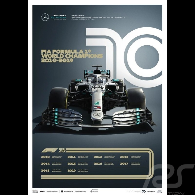 Mercedes Poster AMG Petronas F1 Team World champions 2010 - 2019 Limitierte Auflage