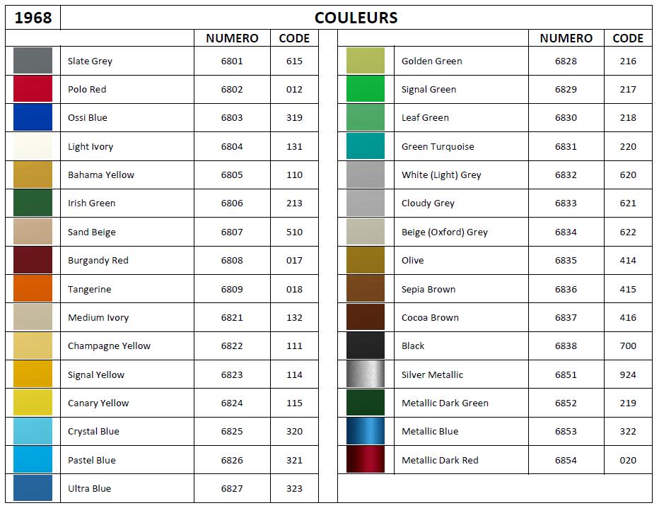 Interieurfarbkarte des Jahrgangs 1968 |