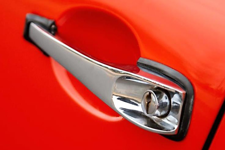 - Die Beschriftungen auf der hinteren Haube sind immer in Goldbuchstaben (außer 911 T und 912, wo Gold optional ist). Das Wort „PORSCHE“ wird wie im vorherigen Jahrgang mit separaten Buchstaben geschrieben. - Die Aufschrift "Sportomatic" ist unter dem Logo des Modells platziert. - In den USA sind vordere und hintere Seitenreflektoren (nur für den Jahrgang 1968) und Sealed-Beam-Scheinwerfer (Glühlampe und Scheinwerfer bilden eine Einheit) vorgeschrieben. - Türgriffe erneut modifiziert, sie haben eine dreieckige Form mit Druckknopf, der in einer durch zwei Rippen gebildeten Vertiefung geschützt ist. |