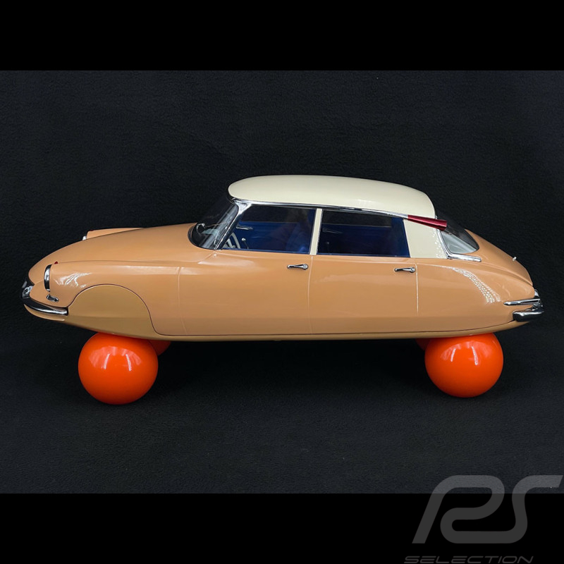 Die Ballonskulptur, die sowohl ID als auch DS ist, nimmt den Farbton "Ecaille Blonde" des ID Nr. 176 von Paul Coltelloni an, der 1959 die Rallye Monte Carlo gewann.
