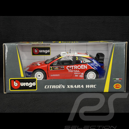 Dieses 1:18 Modell stellt den Citroën Xsara WRC n°3 dar, gefahren von Sébastien Loeb und Daniel Elena beim Sieg der Rallye Zypern 2004. Das Modell von Bburago (Ref. 39044) bietet viele Details wie Antennen, Spoiler, Felgen und markante Dekoration.