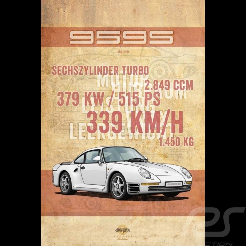 Plakat Porsche 959 S Drückplatte auf Aluminium Dibond 40 x 60 cm Helge Jepsen