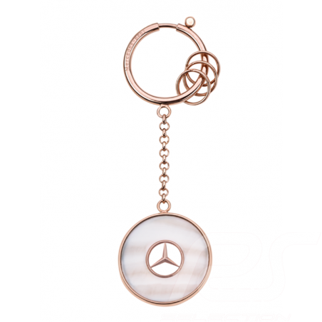 Der Prager Roségold-Schlüsselring sorgt für Ordnung in Ihren Schlüsseln. Schlüssel zu Ihrem Haus, Büro oder Auto: Hier ist alles an seinem Platz. Der Schlüsselring trägt die Aufschrift "Mercedes-Benz" und befindet sich neben dem Öffnungs- und Schließsystem, um ein hervorragendes Finish zu erzielen. Drei zusätzliche kleine Spaltringe zum einfachen Wechseln und Entfernen des Schlüssels sind ebenfalls erhältlich. Der Schlüsselbund hat auch optisch alles zu bieten, mit dem runden Perlmutt-Inlay, das mit dem Mercedes-Star-Logo verziert ist.