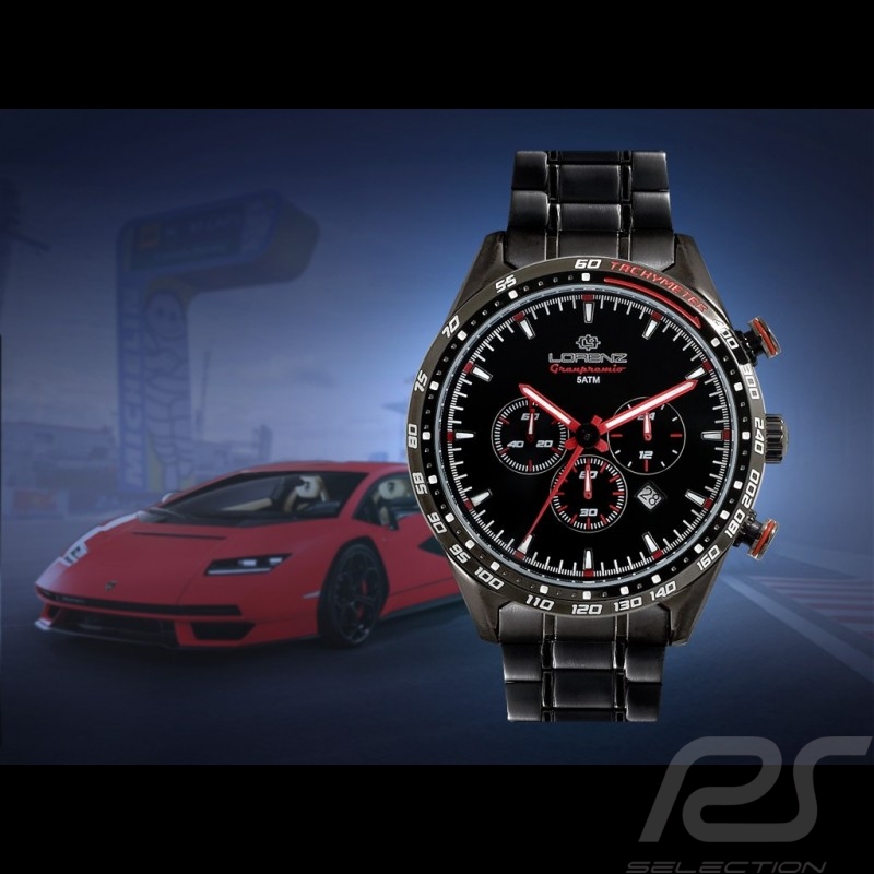 Motorsport Uhr Granpremio Chronograph Stahl Schwarz / Rot Racing mit Spezialbox Helmet Lorenz 030225AA