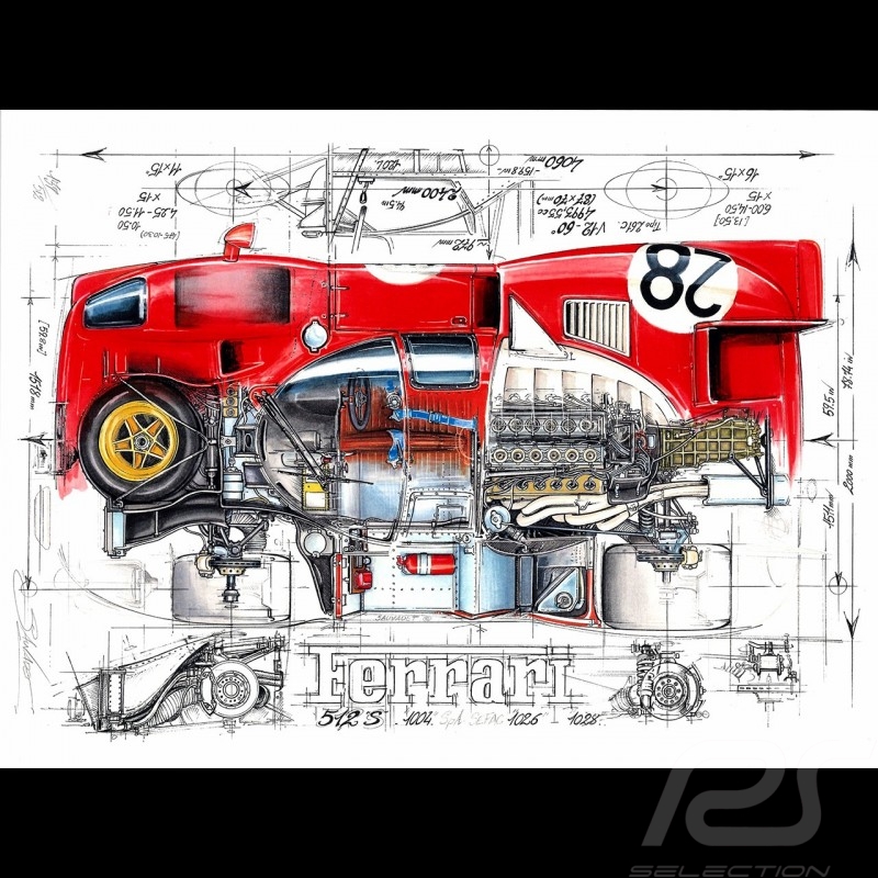 Ferrari 512 S N° 28 Scuderia Ferrari Original Zeichnung von Sébastien Sauvadet