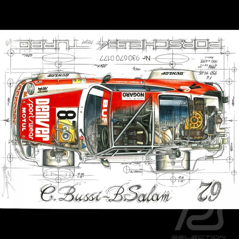 Porsche 934 RSR Le Mans 1979 N° 87 Bussi Original Zeichnung von Sébastien Sauvadet