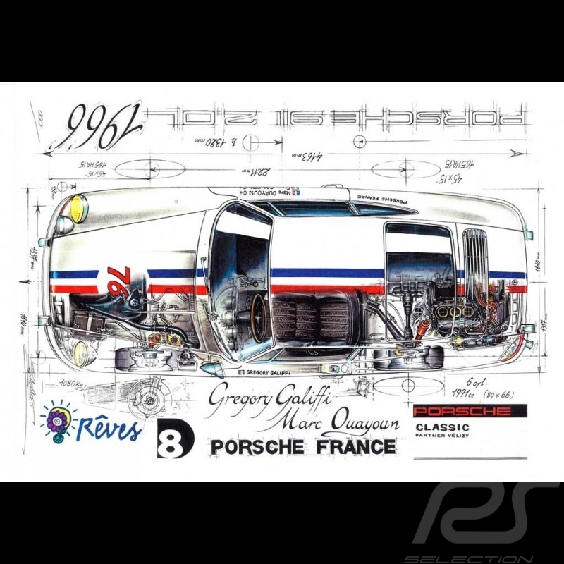 Porsche 911 2.0 L 1966 Original Zeichnung von Sébastien Sauvadet