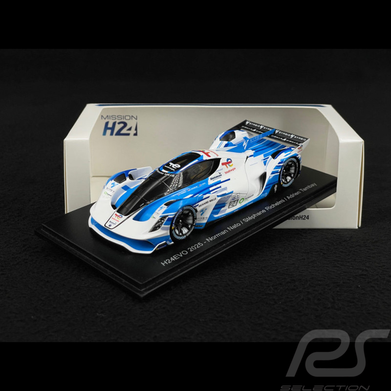 1/43 scale model of the Mission H24 H24EVO 2025, a hydrogen prototype presented at Le Mans in 2024. A detailed resin model by Spark.