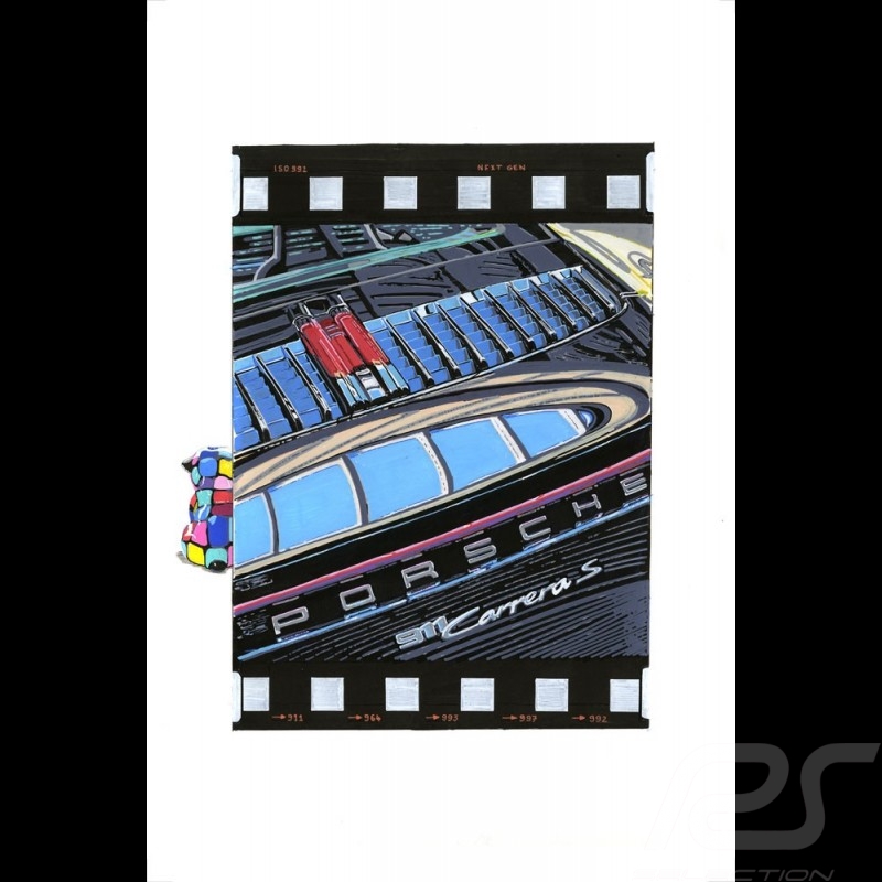 Porsche 911 Carrera S Type 992 "Le Grand Bleu" Bull the Dog Reproduction of an original painting by Bixhope Art