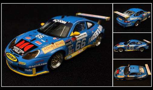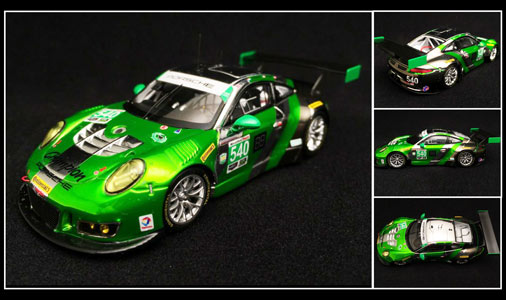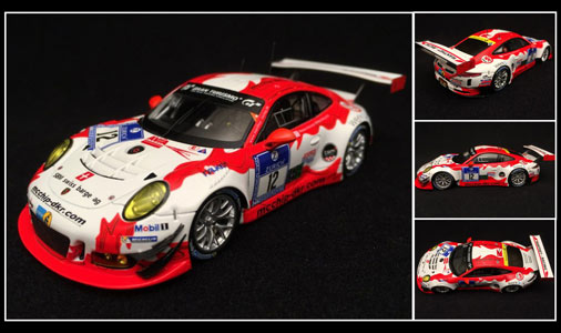 Présentée il y a quelques jours à Genève, la nouvelle 911 GT3 est déjà chez Selection RS. Proposée par Minichamps au 1/43 en boitage Porsche, elle porte l’éternel rouge indien et imite parfaitement la grande, avec son nouveau bouclier avant, les nouvelles entrées d’air moteur, les nouveaux feux arrières fins et sculptés. Du beau travail !