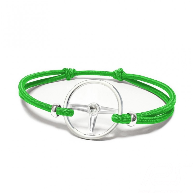 Sports wheel bracelet Silver finish Coloured cord Green Made in France