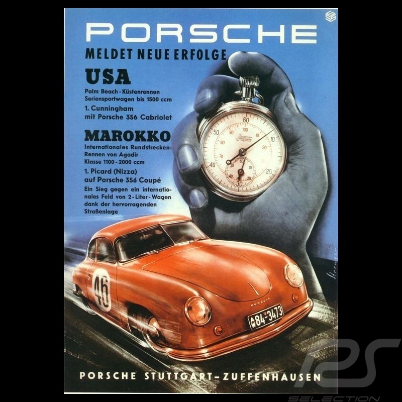 Postcard Porsche 356 chrono original poster of Erich Strenger