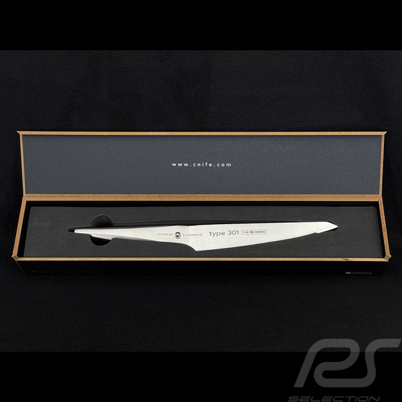 Loved by professional chefs - the Type 301 kitchen cnife series has a one of a kind design. The cnife literally stands out in the kitchen while other knives lay in the background. The ergonomic design was developped by professionals chefs. A metal pearl, wich clearly demarcates the end of the cnife's handle, is built into the design. The quality of the typ 301 series is its most outstandinfg feature. Handle made of Stainless steel material, and the extremely sharp, hand-ground blade is made of the finest japanes pure 301 steel