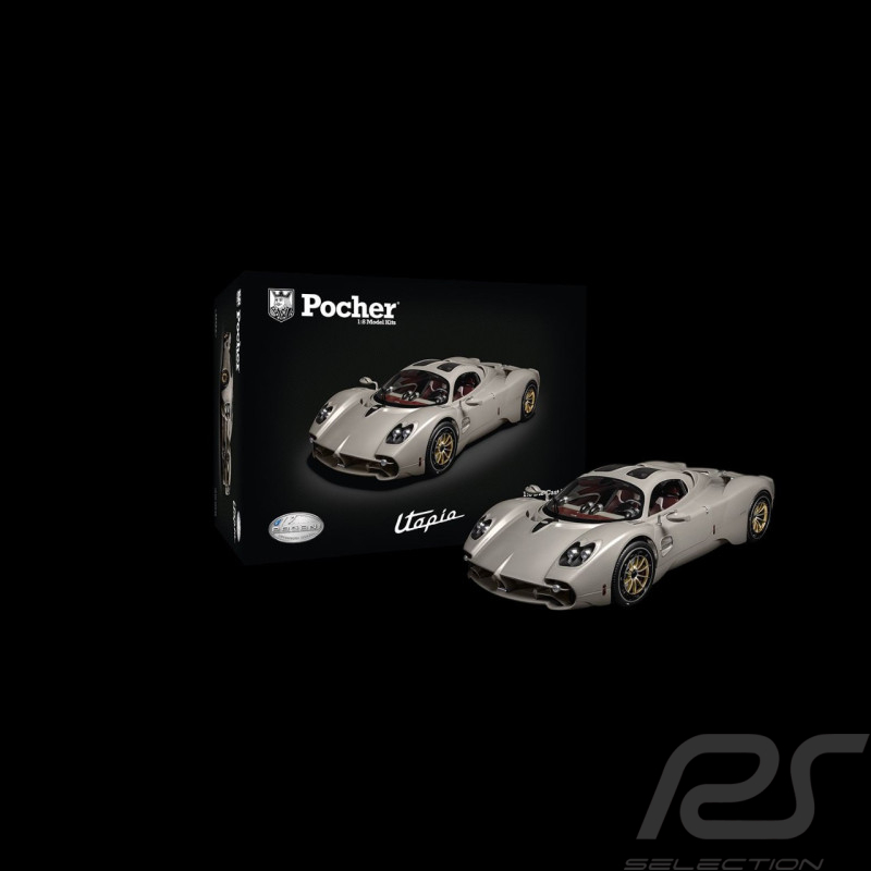 High-end model kit of the Pagani Utopia Coupé in 1:8 scale by Pocher. Featuring over 550 pieces, moving parts, a V12 engine replica and luxury finishes – a collector’s dream in Rinascimento Lucido paint.