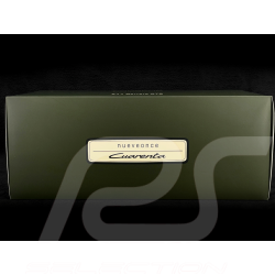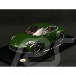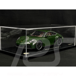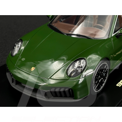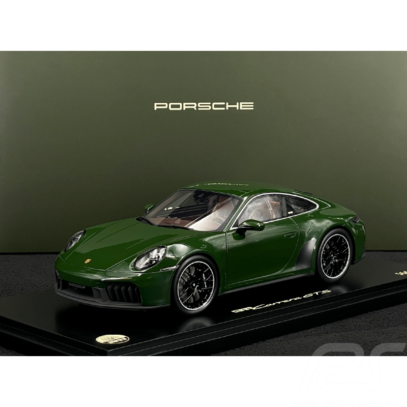 This model represents the 2024 Porsche 911 Carrera GTS Coupé Type 992 Cuarenta Edition, a special edition celebrating the 40th anniversary of Porsche Ibérica. Featuring an exclusive Quercusverde exterior and a two-tone leather interior in Truffle Brown and Cohiba Brown. Resin model, displayed in showcase. Limited edition of 911 pieces.