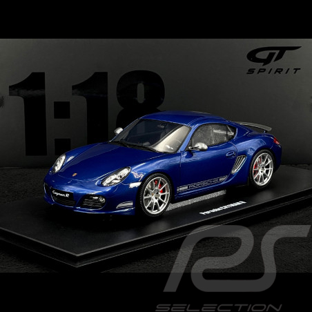1/18 scale model of the 2012 Porsche Cayman R Type 987 in Aqua Blue Metallic. A sleek GT Spirit resin model with aggressive lines and fine details.