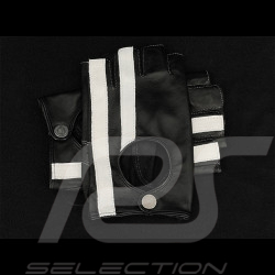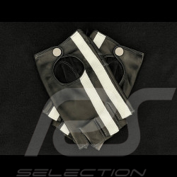 Driving Gloves fingerless Racing Mittens Leather Black / White stripes