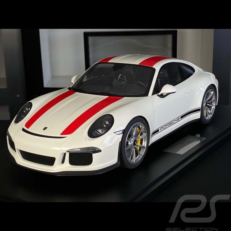 Porsche 911 R Type 991 2016 Pure White with red stripes 1/8 Minichamps 800652000
