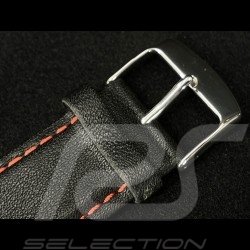 Watch Band Rally Leather Black / Red Stitching - Steel buckle