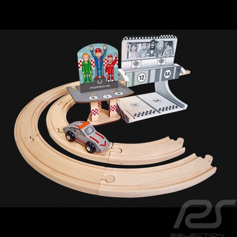 Porsche Racing wooden track Finish podium with 1 car and 11 rails Eichhorn 109475860