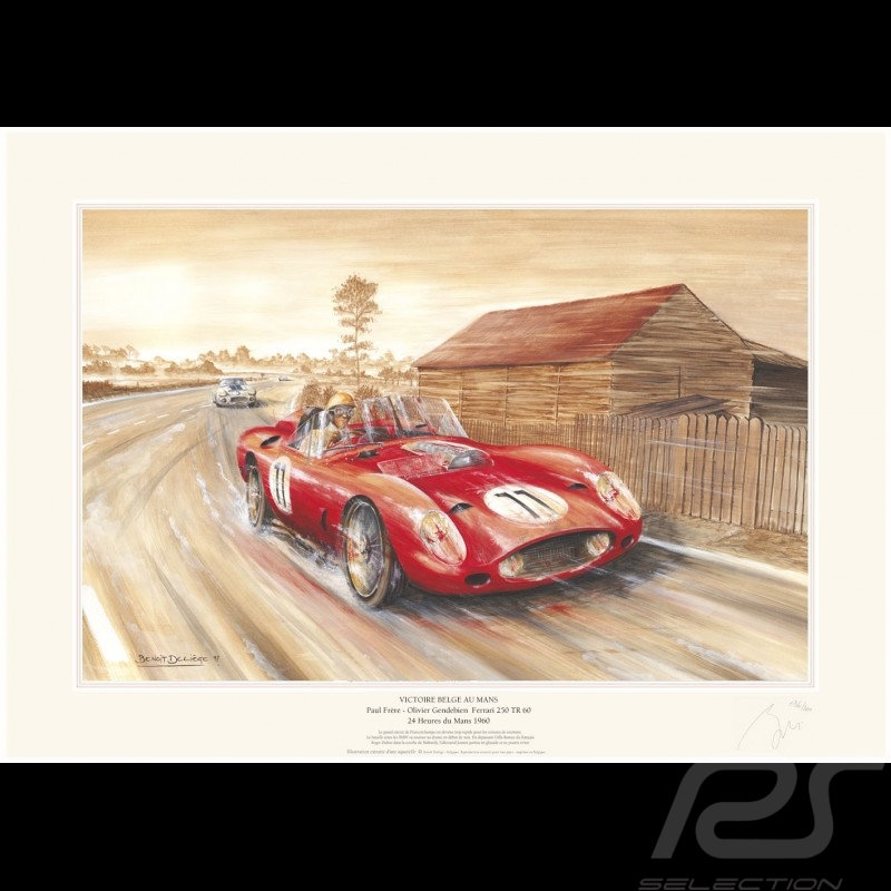 Poster Ferrari 250 TR 60 n° 11 24h Le Mans 1960 " Victoire belge au Mans " de Benoît Deliège