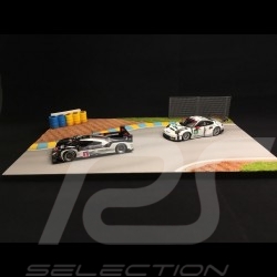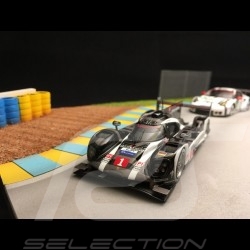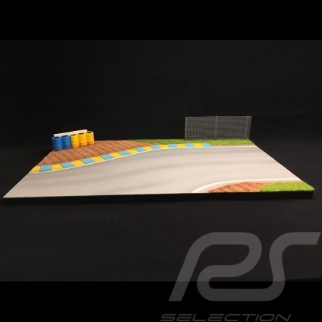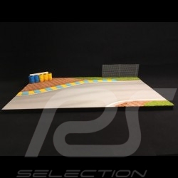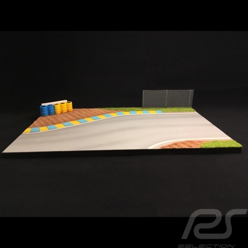 Piste décor diorama courbe Le Mans avec grillage et pneus jaunes et bleus 1/43