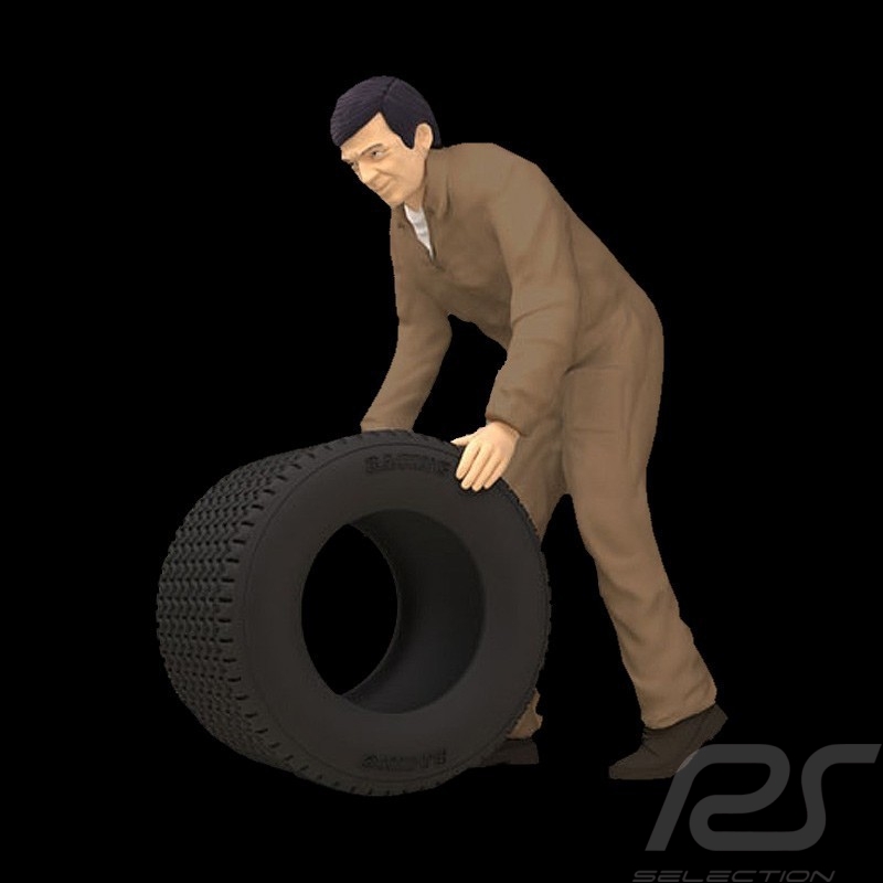 Mécanicien brun avec pneus Porsche 1/18 Figurine diorama AE180116