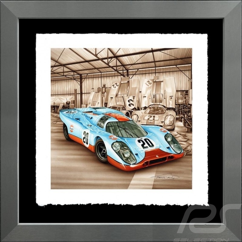 Porsche Poster 917 K Le Mans 1970 n° 20 Gulf Cadre aluminium François Bruère - VA107