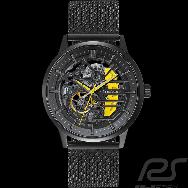 Montre automatique Paddock Noir / Jaune Bracelet Metal Fabriqué en France Pierre Lannier 338A449