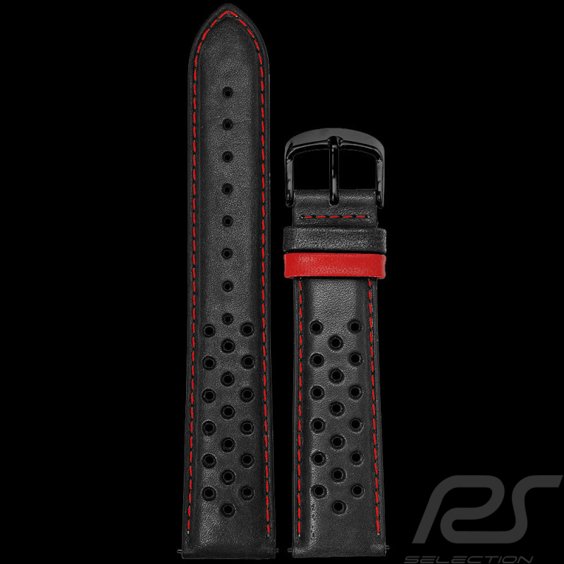Bracelet de montre Pierre Lannier Cuir Noir / Surpiqûres rouge - boucle acier BRA046A2253