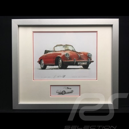 Porsche 356 C Cabriolet rouge cadre bois alu avec esquisse noir et blanc Edition limitée Uli Ehret - 139