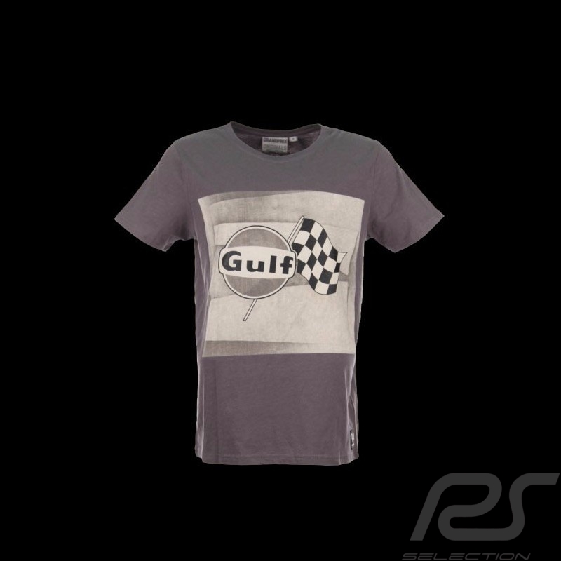 Superbe T-shirt Racing avec logo Gulf et le drapeau à damier imprimé sur la poitrine.