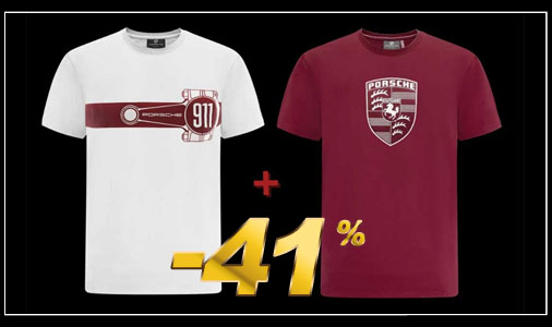 Duo T-Shirts Porsche Matière 100% Coton Couleur Blanc - Rouge Porsche WAP670PESS WAP671PESS