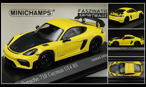 Porsche 718 Cayman GT4 RS Weissach Package 2021 Jaune / Noir 1/43 - Minichamps 413069712 Edition Limitée - 200 exemplaires numérotés 59,95 € TTC / Incl. Taxes
