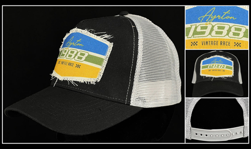 Casquette Vintage Ayrton Senna Matière Textile 100% Coton / Mesh 100% Polyester - Couleur Noir / Gris Partie arrière maille mesh très respirante - Taille ajustable par réglette clipsable 29,95 € TTC / Incl. Taxes