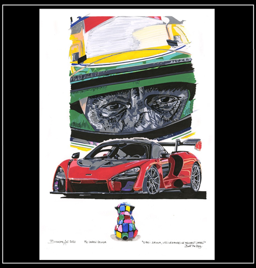 Reproduction d'une peinture originale de Bixhope Art - Ayrton Senna Immortel 70 x 50 cm - Papier 310 g/m2 verni anti-UV Cadre non fourni 99,95 € TTC / Incl. Taxes