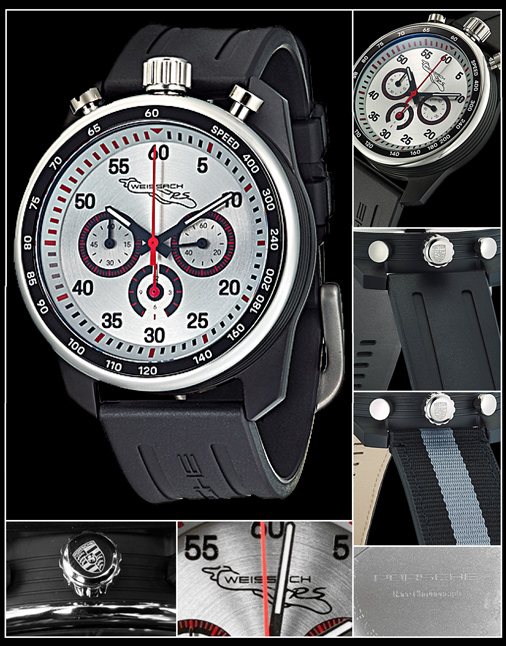 Montre Porsche Chronographe Weissach RS 50 ans Mouvement Miyota OS30 - Cadran argenté, radial et poli - Diamètre 42 mm Présentée en coffret avec un second bracelet textile bicolore (noir/gris) Bracelet 22 mm en caoutchouc noir - Fonction d'arrêt intégrée Couronne vissée et poussoir à 12h - Etanche 10 ATM Garantie 2 ans - Fabriqué en Allemagne Porsche WAP0700090NRA 599,95 € TTC / Incl. Taxes