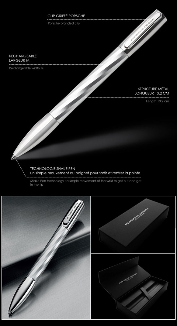 Stylo à bille Porsche Design - Shake Pen Big Twist K3145 Technologie Shake Pen Couleur argent - Longueur 13,2 cm Fabriqué en Allemagne Porsche Design 802611