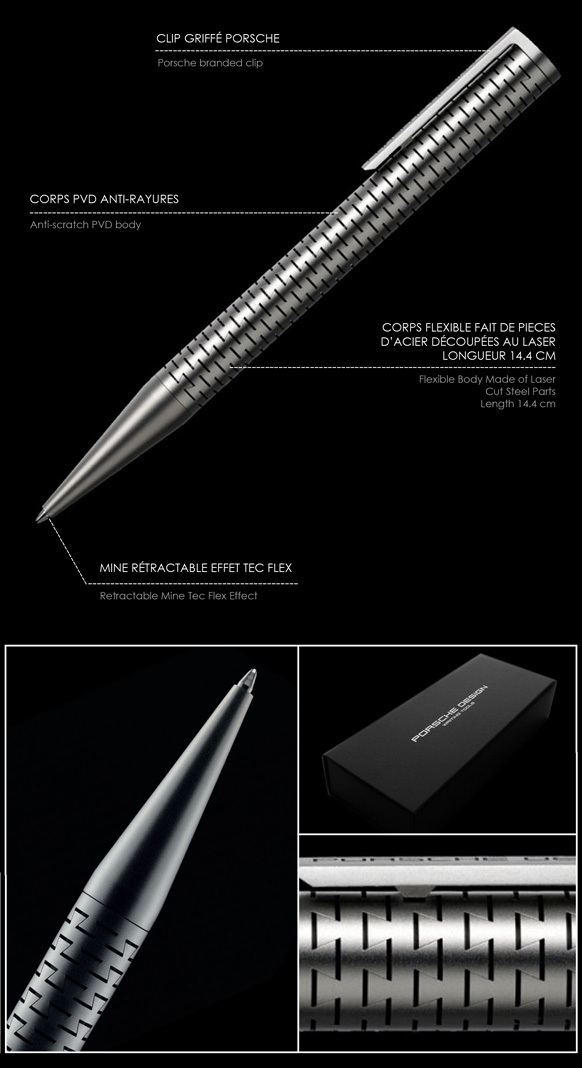 Stylo à bille Porsche Design - Laserflex acier P3115 Corps flexible fait de pièces en acier découpées au Laser Mine rétractable Effet Tec Flex Corps PVD anti-rayures - Longueur 14,4 cm Fabriqué en Allemagne Porsche Design 914416