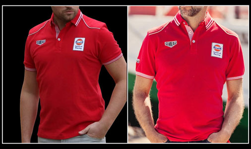 Polo homme Gulf - Spirit of Racing Renfort matelassé sur les épaules liseré blanc Col rayures blanche maille fine Couleur rouge - 100% coton