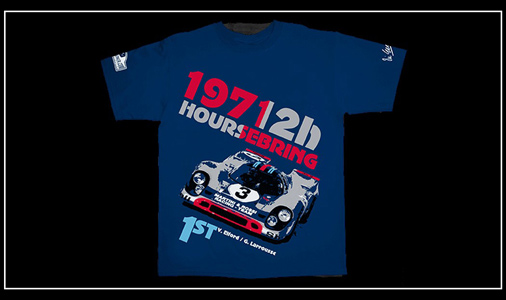 T-Shirt homme Porsche 917 K Sebring 1971 Matière 100 % coton - Coutures renforcées Couleur bleu marine - Made in USA