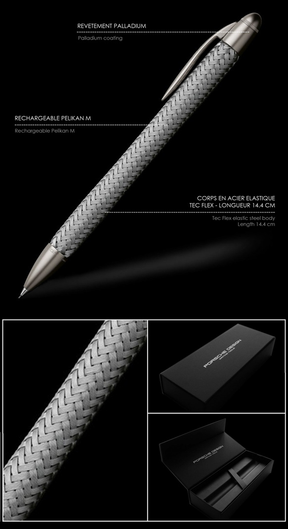 Stylo à bille Porsche Design - Tec Flex P3110 Rechargeable Pelikan M Corps en acier élastique Tec Flex Revêtement Palladium - Longueur 14,4 cm Fabriqué en Allemagne Porsche Design 988709