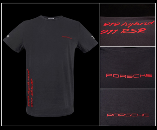 T-shirt homme XXXL Porsche 919 Hybrid / 911 RSR Matière 100% Coton doux au toucher - Couleur gris foncé / rouge Inscriptions devant dos poitrine manches Porsche WAP799