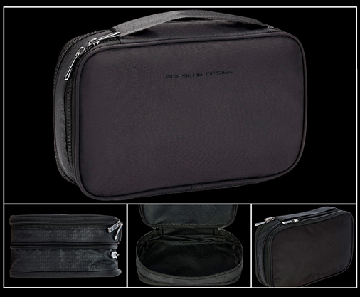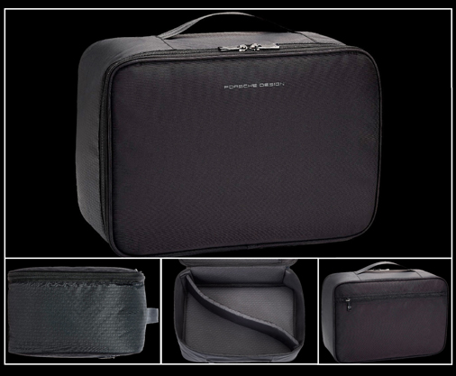Trousse de voyage Porsche Design Roadster S Fermeture à glissière sur tout le pourtour - Dimensions 28 x 17,5 x 6/9 cm - Couleur Noir Matière Nylon - Doublure intérieure polyester - Poignée de transport Porsche Design - OAC09002 49,95 € TTC / Incl. Taxes
