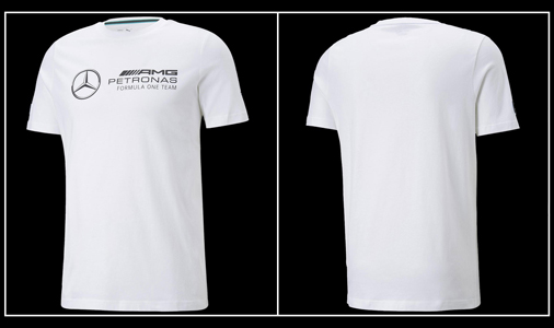 T-shirt homme Mercedes-AMG Petronas F1 by Puma Matière 100% Coton - Couleur : Blanc Puma 534917-03 44,95 € TTC / Incl. Taxes