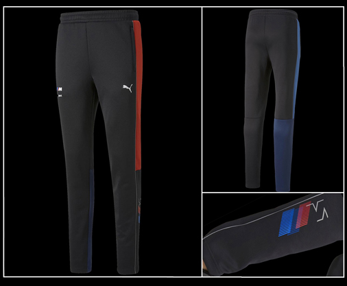 Pantalon homme BMW Motorsport by Puma Taille élastiquée - 2 poches latérales - Bords droits cotelés Couleur Noir / Bleu / Rouge - Matière 66% Polyester / 34% Coton Puma 536211-04 79,95 € TTC / Incl. Taxes