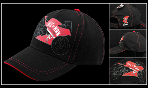 Casquette Isle of Man Tourist Trophy Road Races Taille unique ajustable par velcro Matière 100% Coton - Couleur Noir / Rouge Isle of Man 19IOM-BBC-BIKE