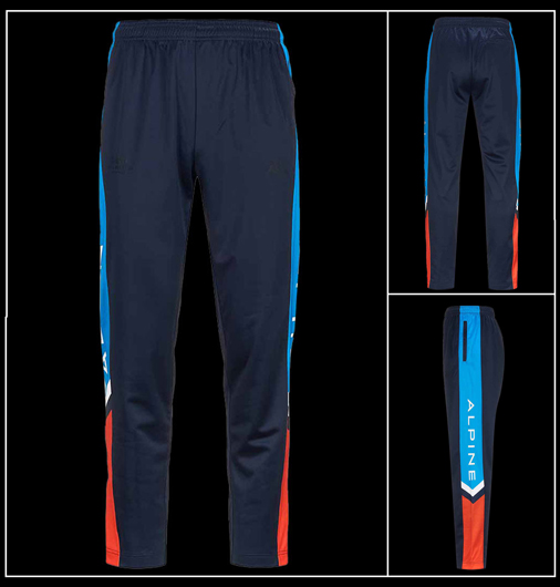 Pantalon homme Alpine F1 by Kappa Matière 100% Polyester - Couleur Bleu Marine - 2 poches latérales zippées Taille élastiquée et cordon de serrage Kappa 351M83W_A00