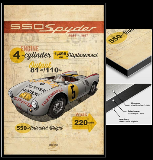 Aluminum Plate Porsche 550 Spyder 40 x 60 cm